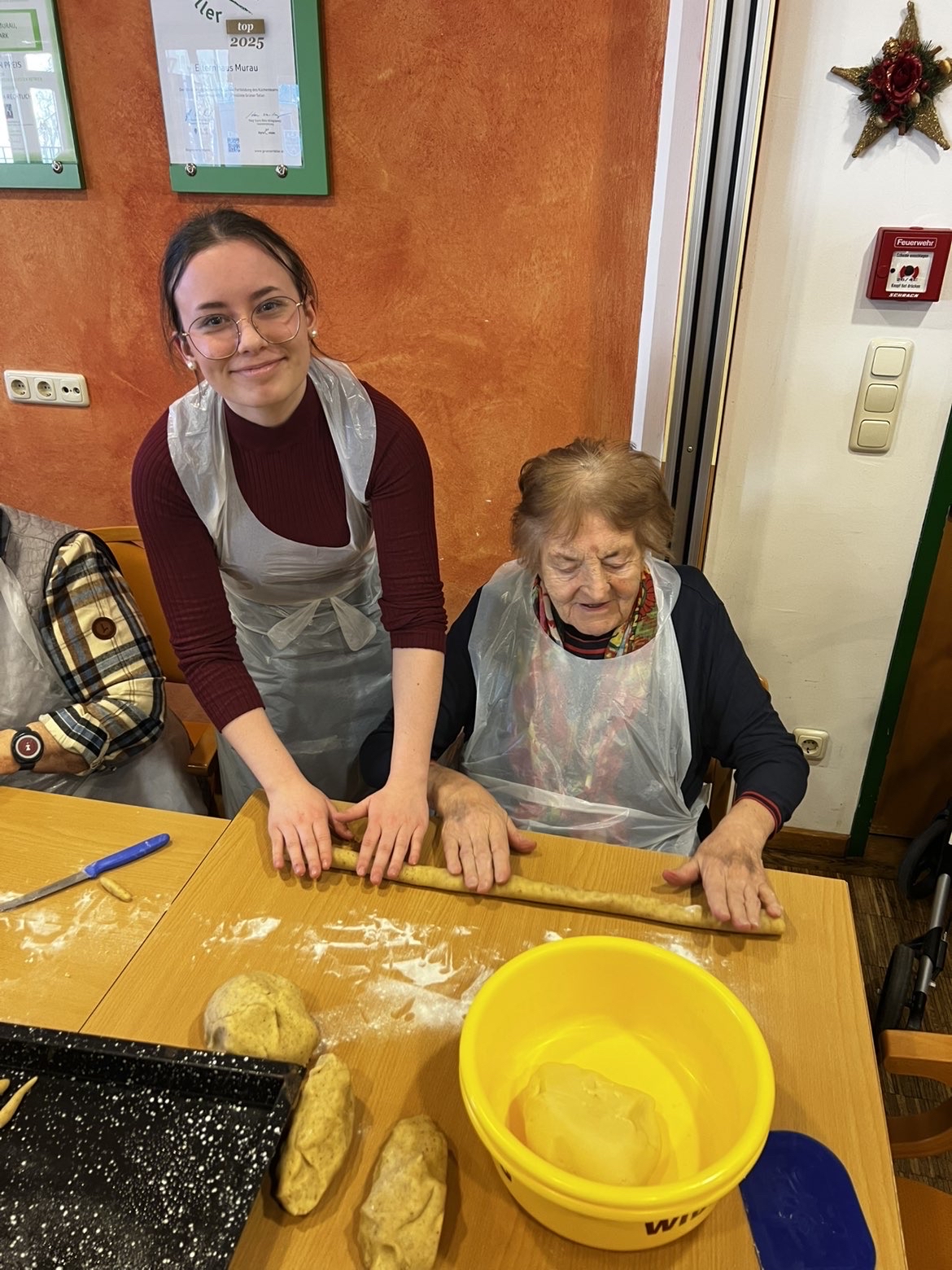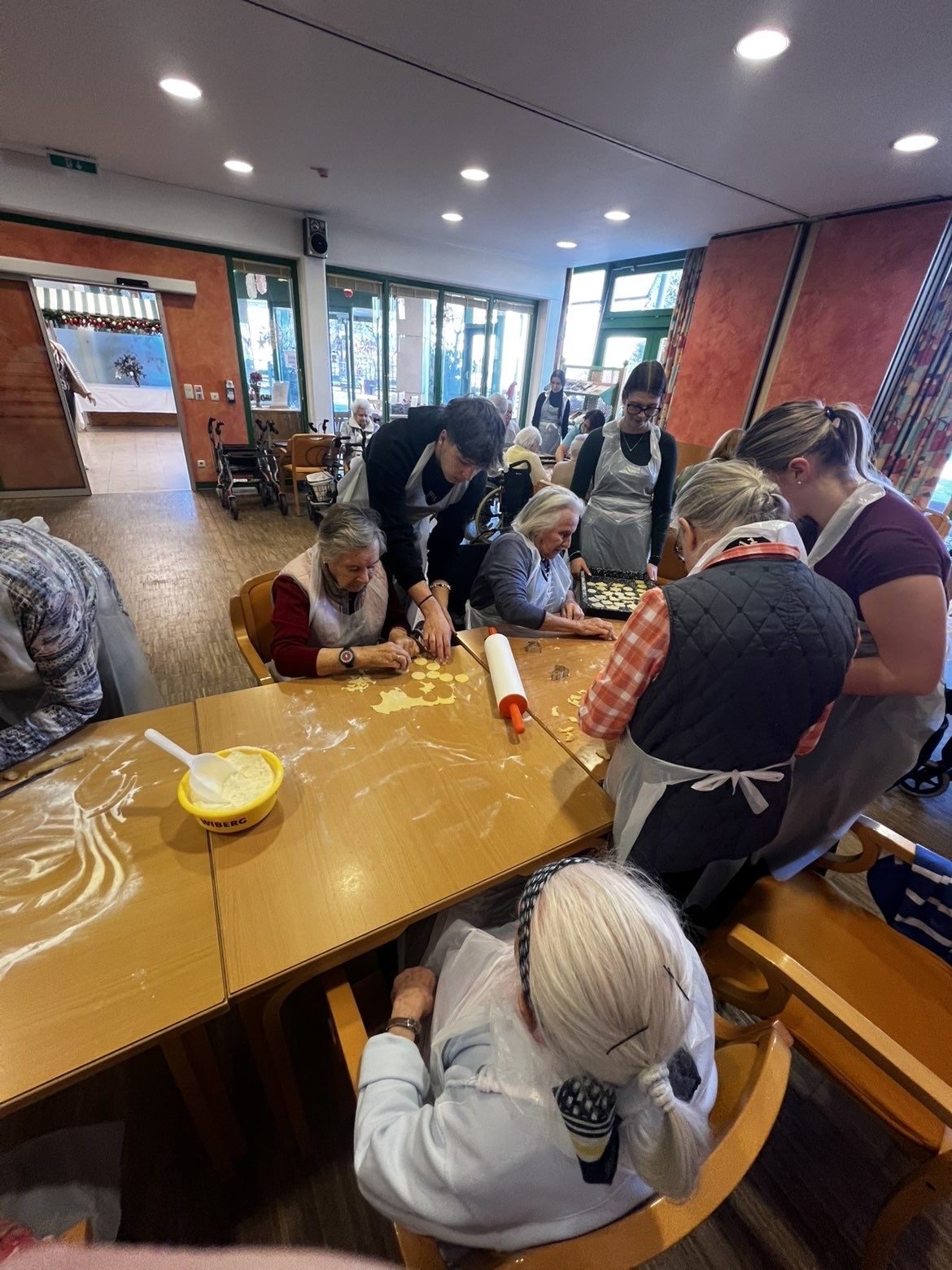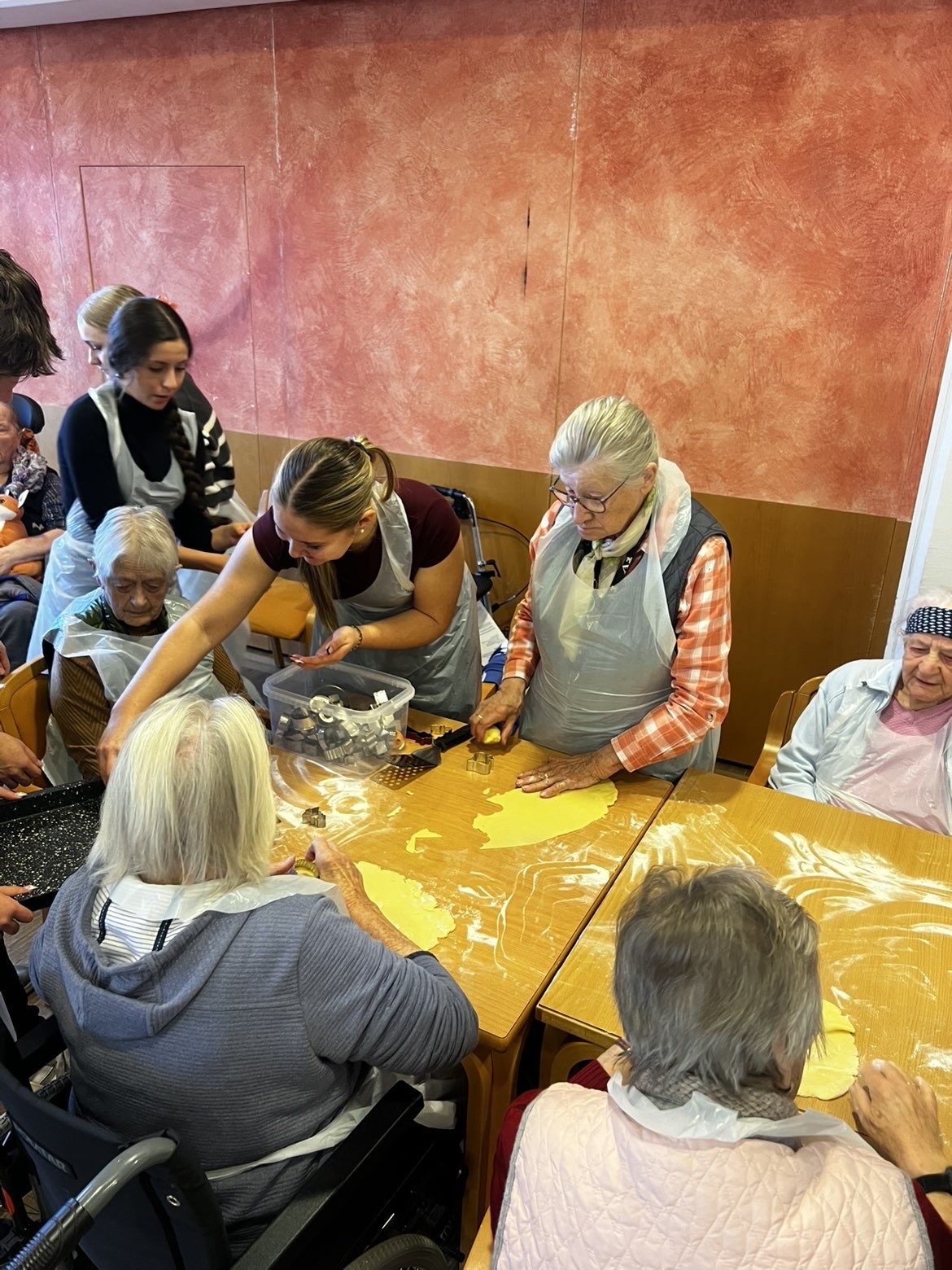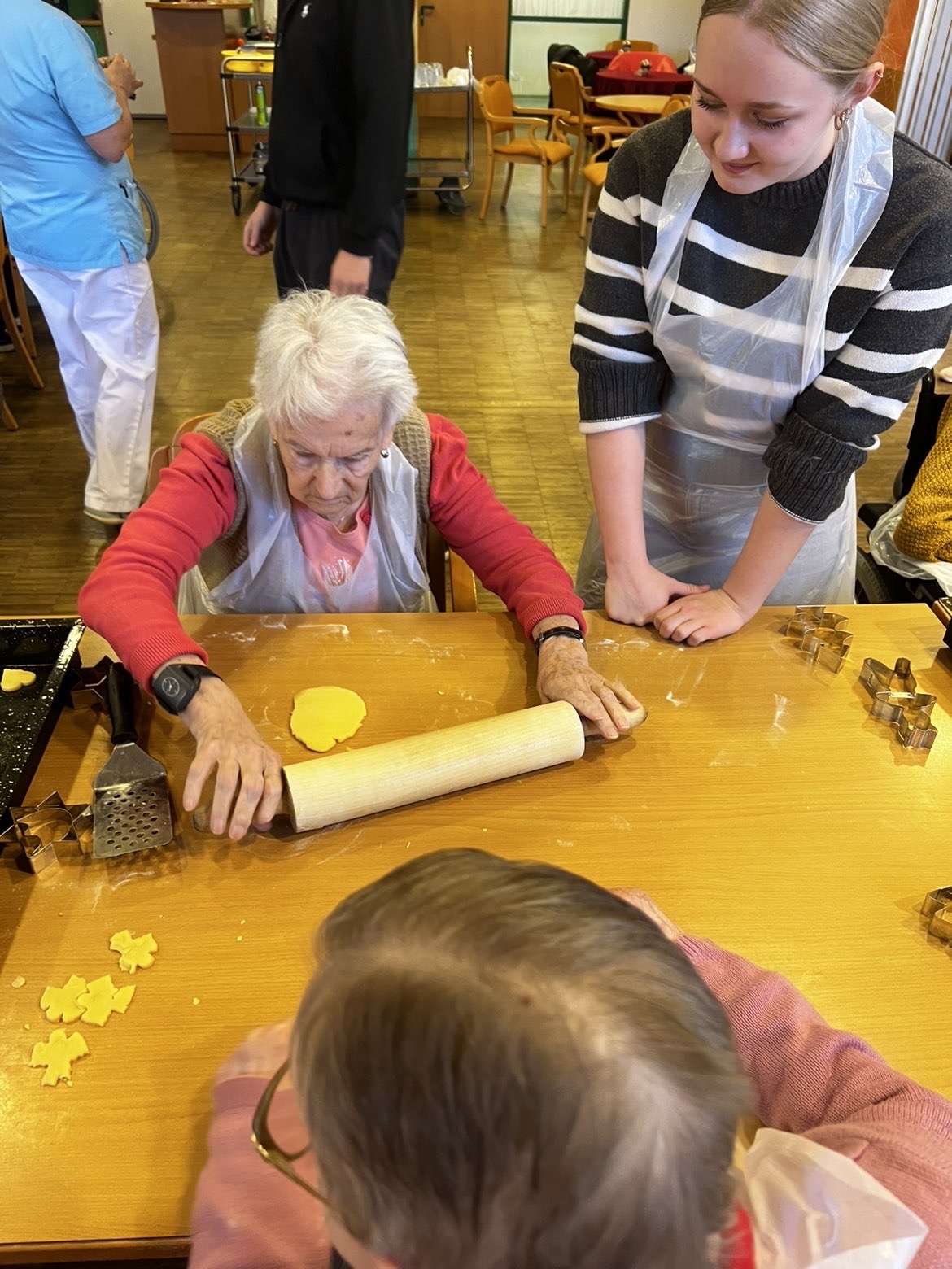 Im Rahmen des Generationenaustausches besuchten die Schüler:innen des 3. Jahrgangs das örtliche Elternheim, um gemeinsam in vorweihnachtlicher Atmosphäre Kekse zu backen. Dabei standen Austausch, Miteinander und vorweihnachtliche Freude im Mittelpunkt.