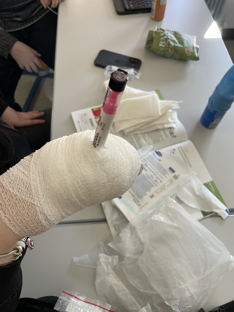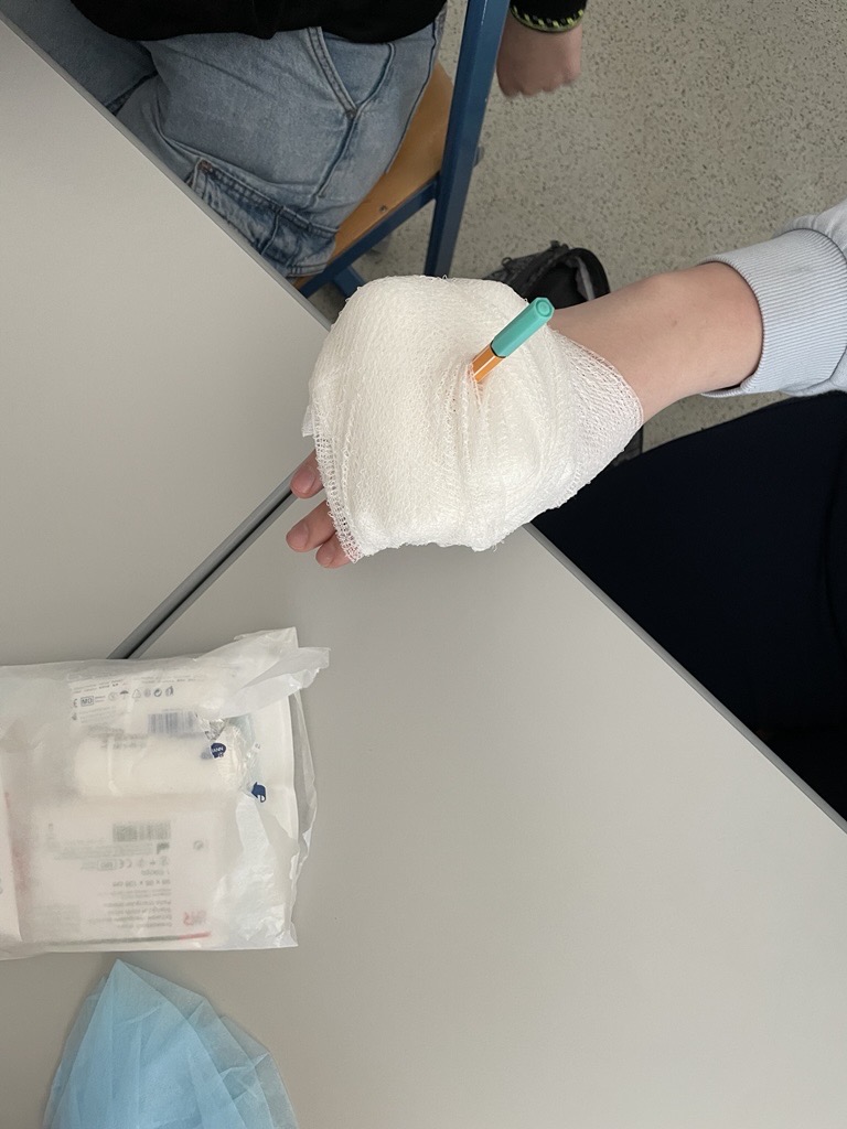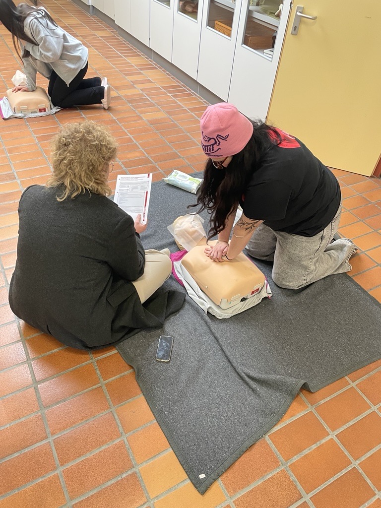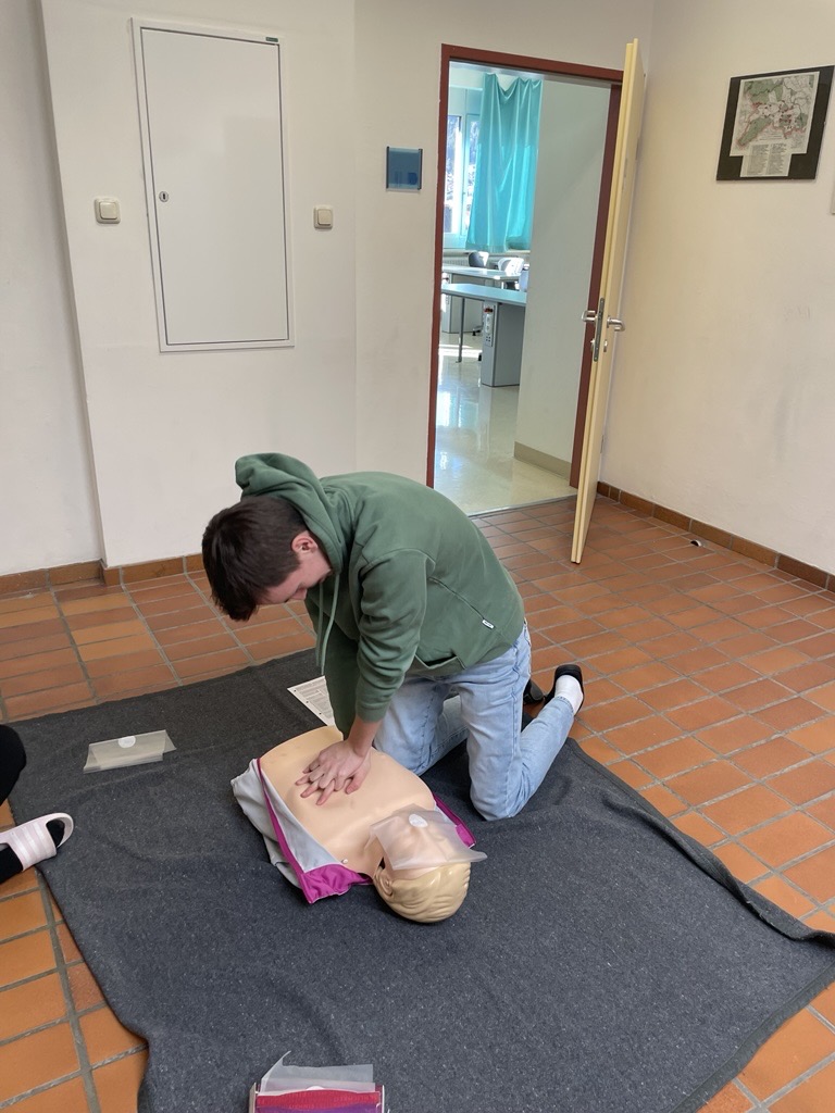 Wie verhalte ich mich bei einem Verkehrsunfall? Wie gehe ich mit Erkrankungen und Verletzungen um? Und wie rette ich Leben? Die Antworten auf diese Fragen erhielten unsere Schüler:innen in einer praxisnahen Erste-Hilfe-Ausbildung. Organisiert und durchgeführt wurde der Kurs von Mag. Nadine Moser, Verantwortliche des Roten Kreuzes.