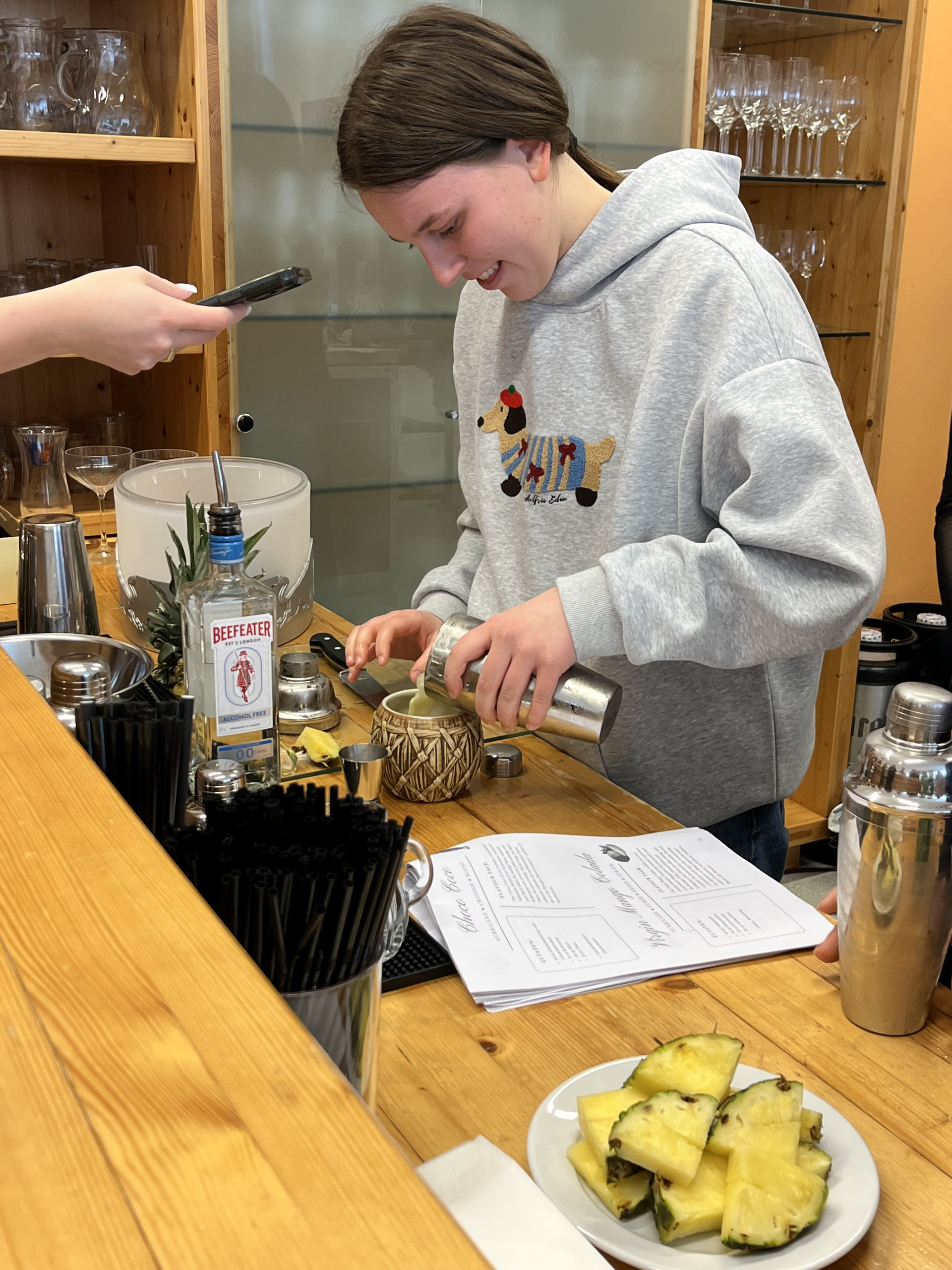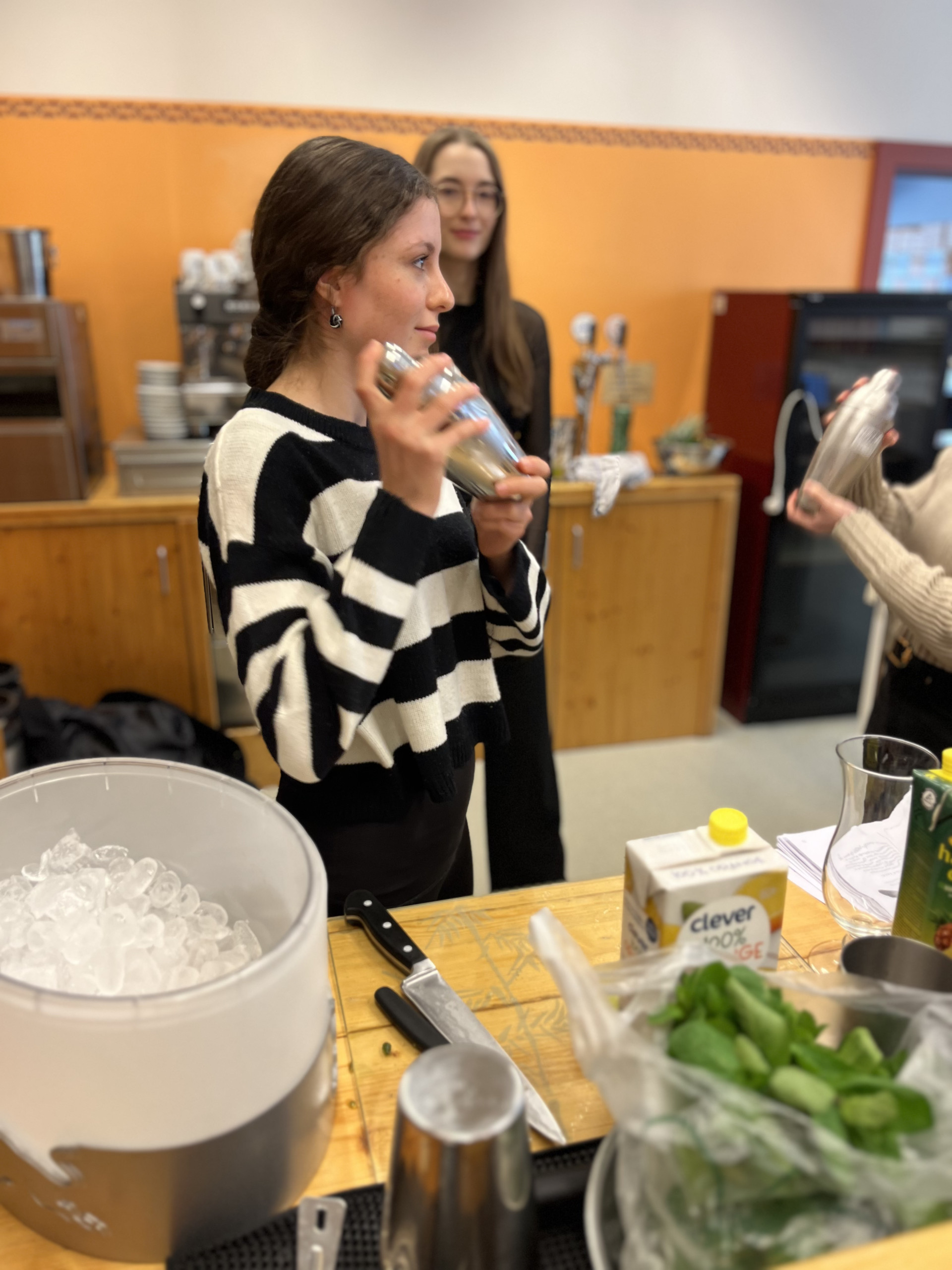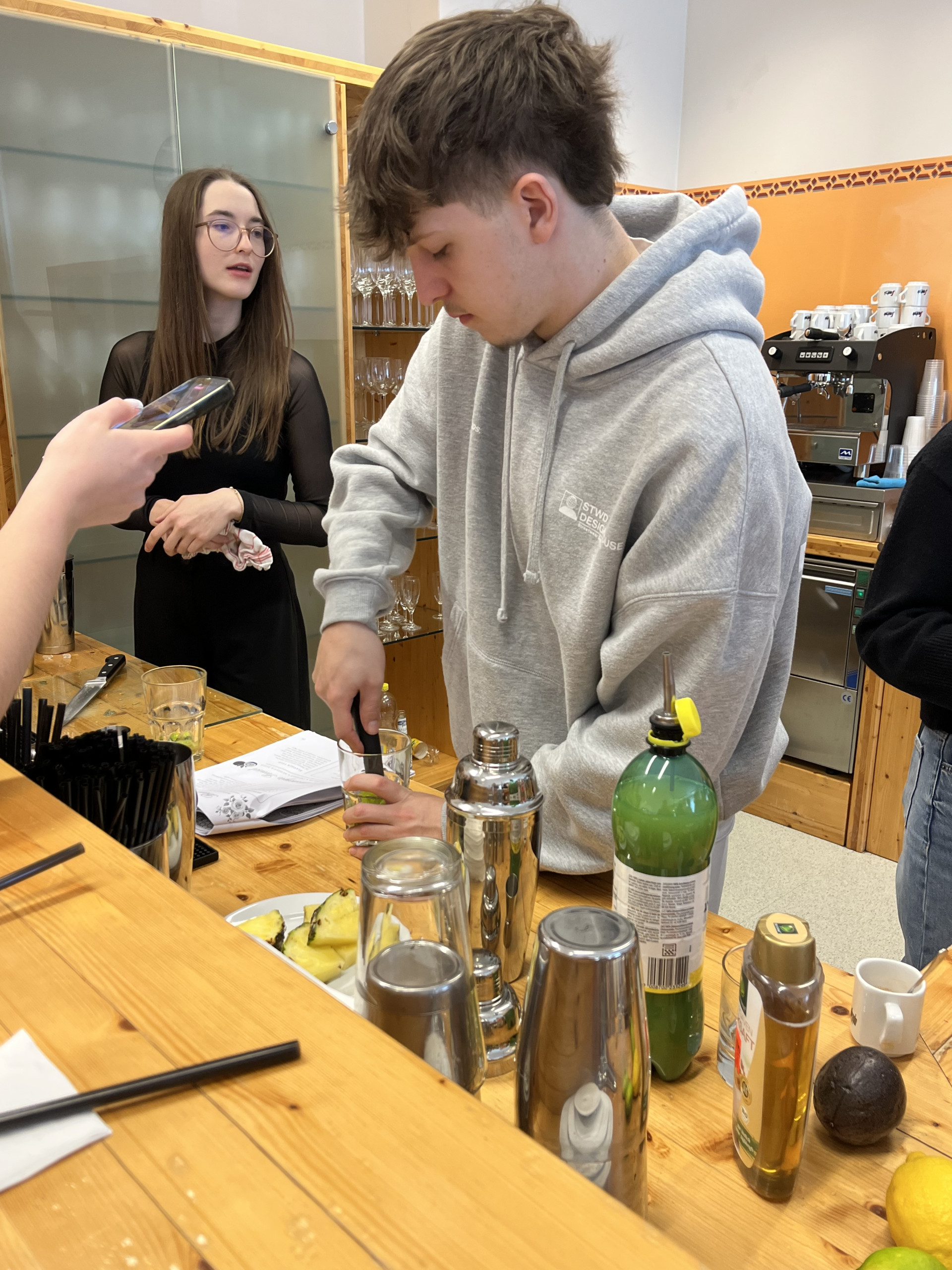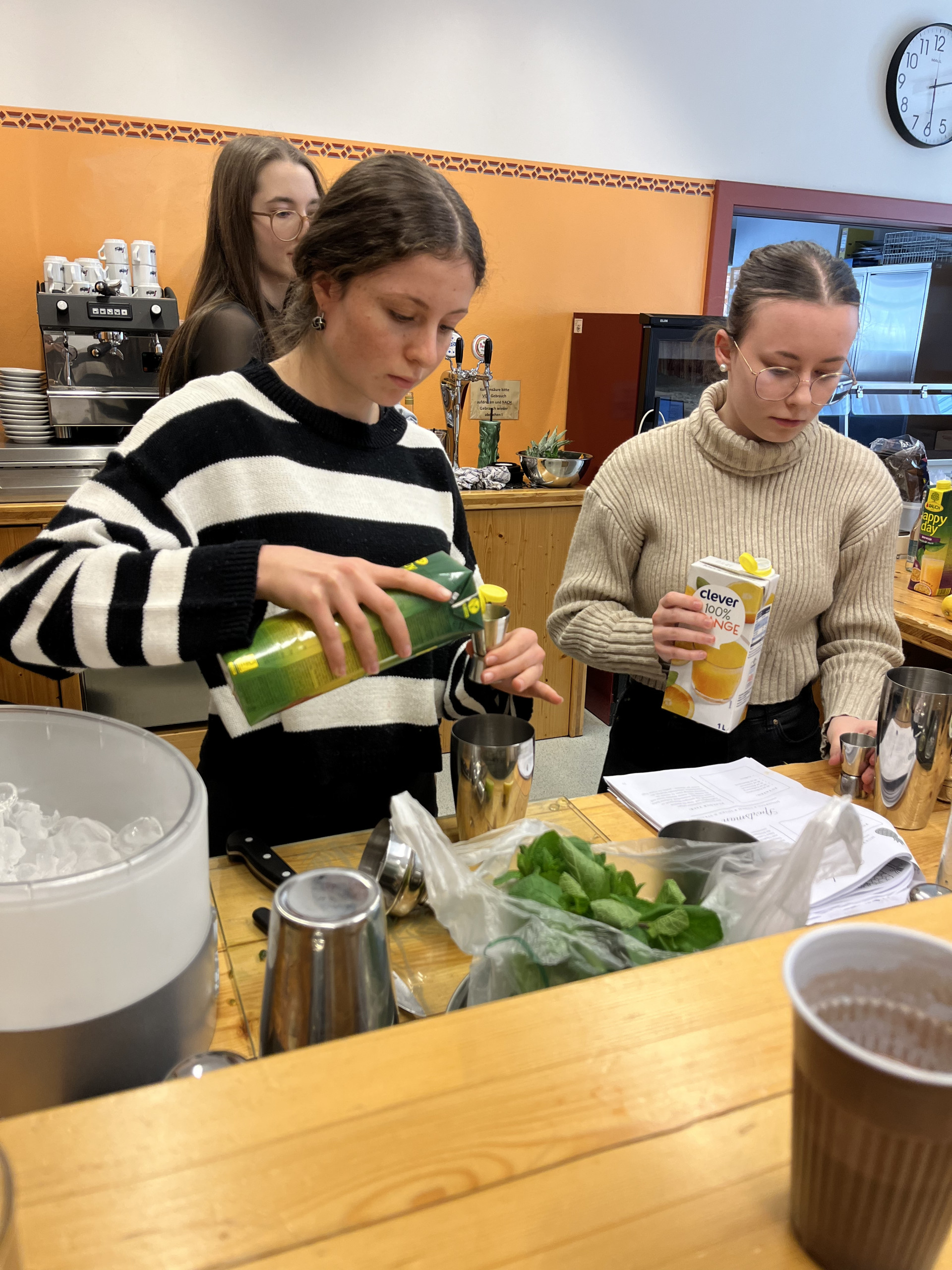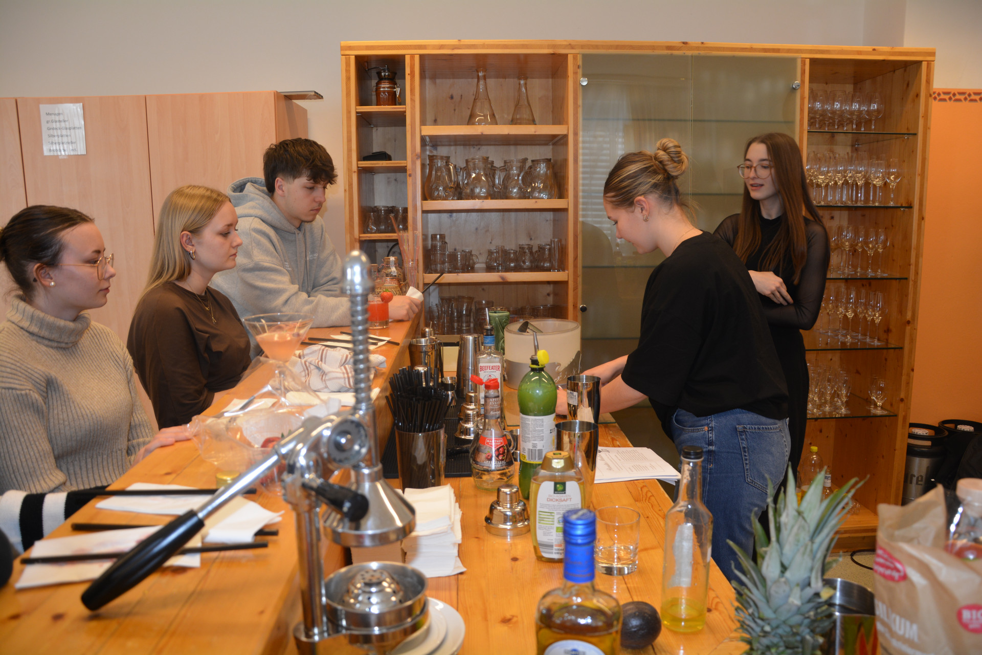 Shaker in die Hand und los ging’s: Der 3. Jahrgang tauchte im Unterricht für Küchen- und Restaurantmanagement gemeinsam mit Expertin Sophie Kaiser in die Welt der Barkultur ein. Neben Warenkunde, Hygienestandards und dem richtigen Einsatz von Barwerkzeugen stand vor allem das praktische Mixen im Mittelpunkt – und dabei bewiesen die Schüler:innen echtes Talent hinter der Bar. Der Workshop war nicht nur ein genussvoller Einblick in die Praxis, sondern auch die perfekte Vorbereitung auf das bevorstehende 12-wöchige Berufspraktikum.
